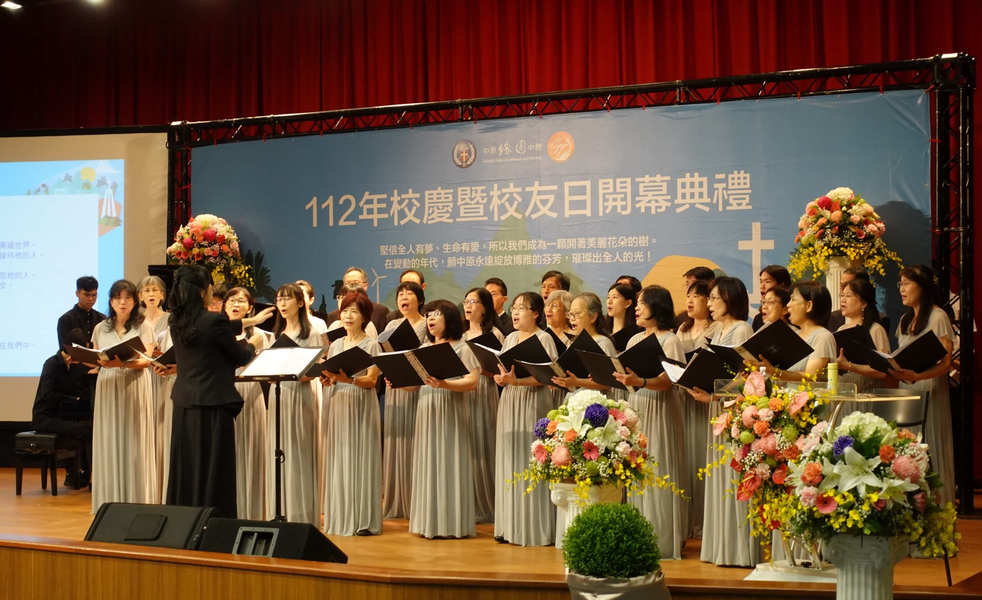校慶典禮在維澈樓宗倬章紀念廳展開,開幕序曲特別邀請長笛家張浩老師、小提琴家簡山根、聲樂家羅明芳及鋼琴家李采穎,帶來曲目「慈悲的耶穌」以及「花之二重唱」,用精湛的演出令在場的每位貴賓都沉浸在音樂饗宴中。接著登場的是由羅明芳老師帶領的中原大學教職員詩班,獻上詩歌「為愛降生」,透過詩歌的信息以及扣人心弦的嗓音為中原68周年獻上祝福。